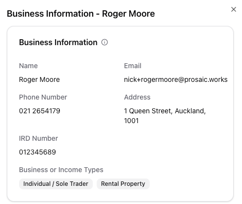 - IRD number – helps ensure GST and tax returns are correctly linked.