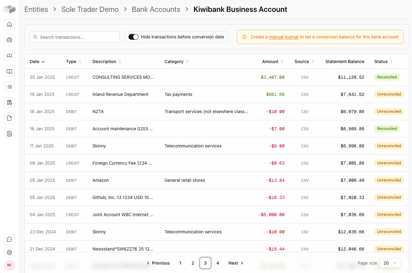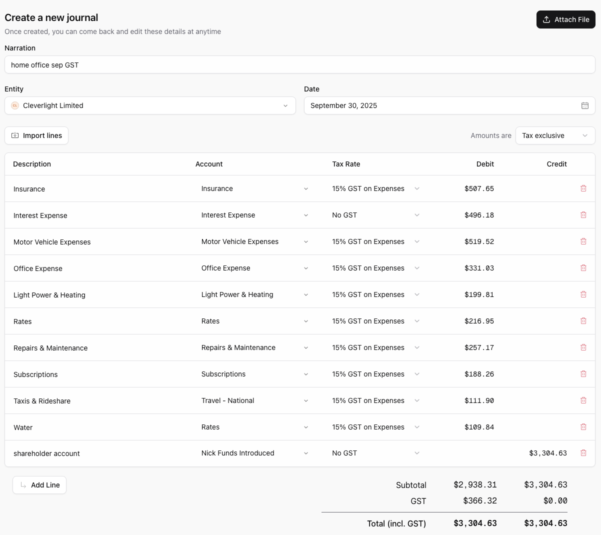 Tip: If clients run a lot of business spend through personal bank accounts, you can keep these separate from their primary business entity, by setting up a personal entity with simple chart of accounts, eg "Home Office Expenses"
