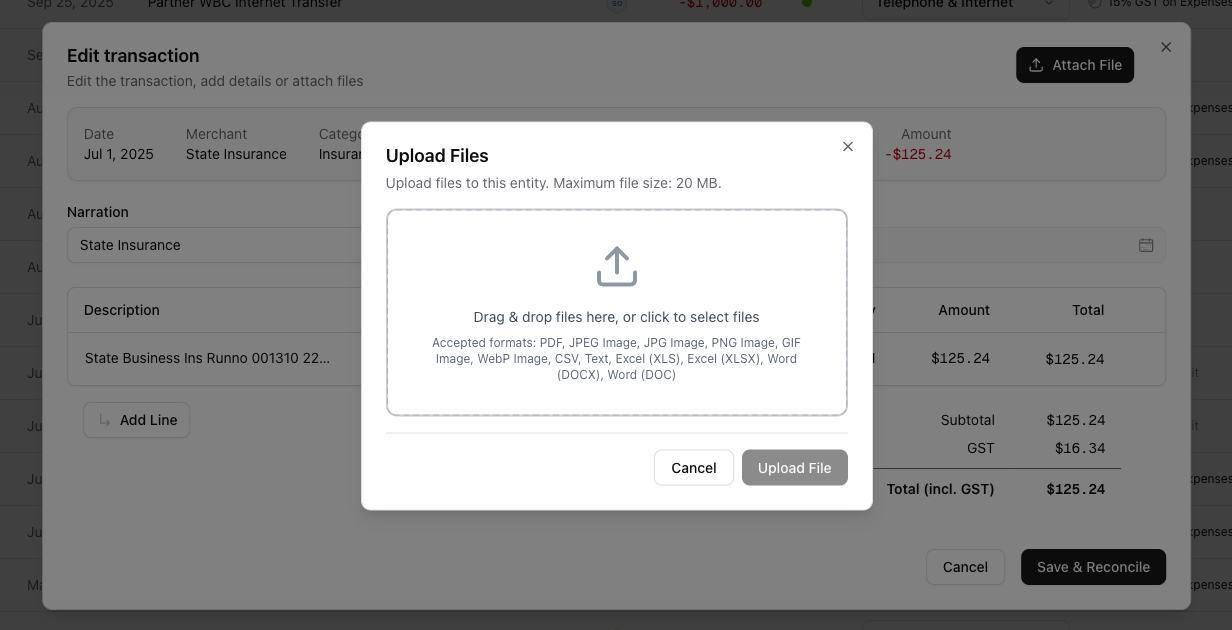 - You can now upload and attach files directly to manual journals and reconciled transactions
