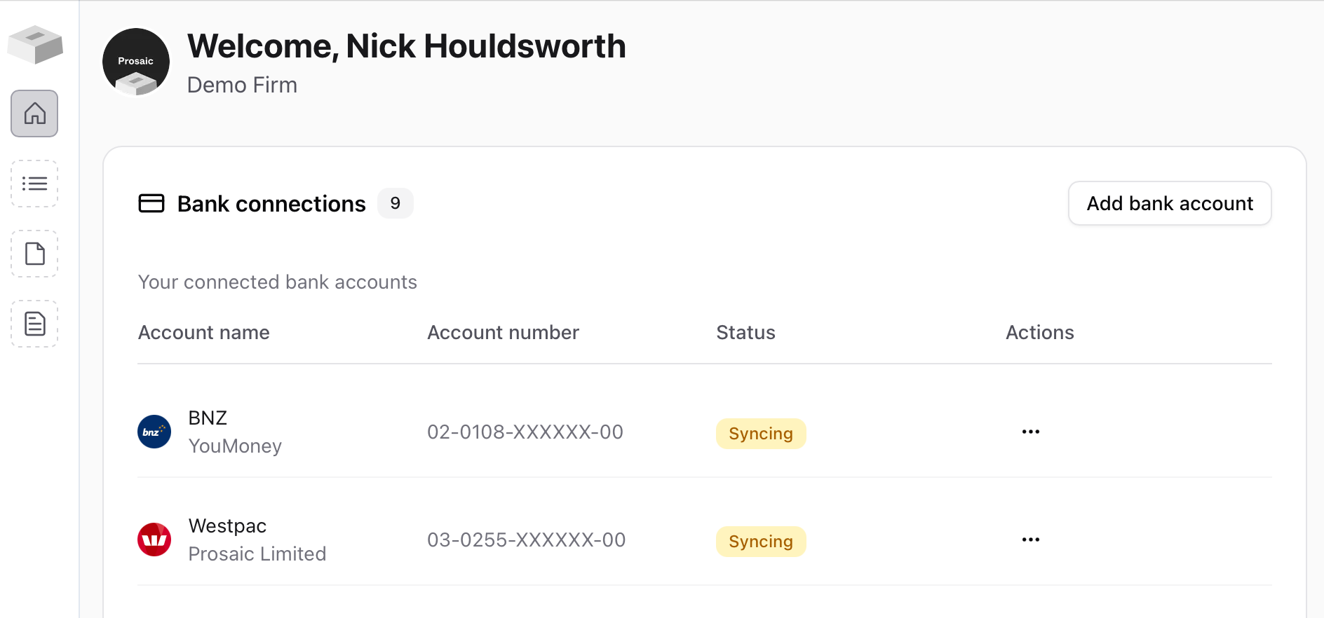 Prosaic now supports official Open Banking connections through our partner Akahu for the four main New Zealand banks. This makes connecting and maintaining bank feeds more secure and easier for clients.